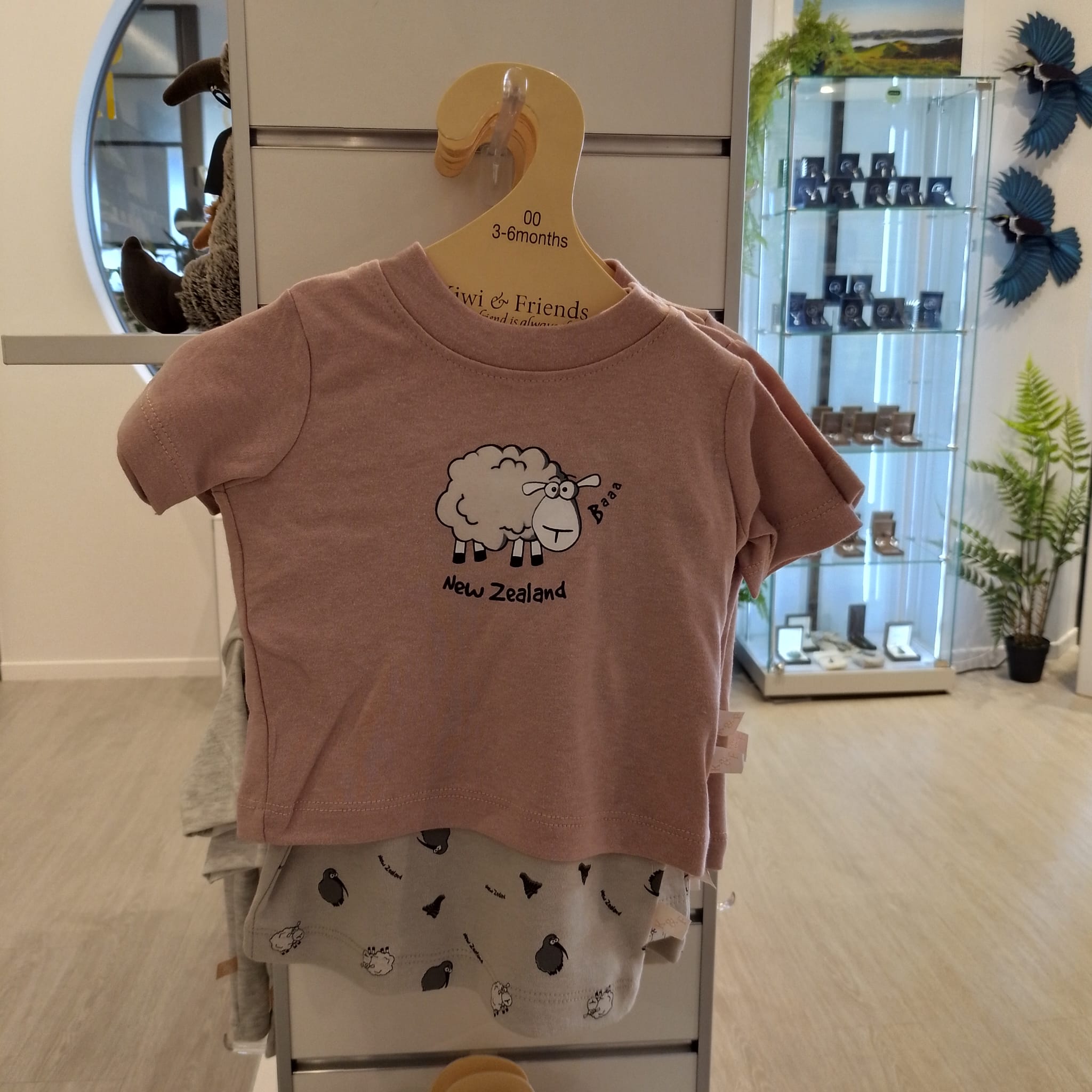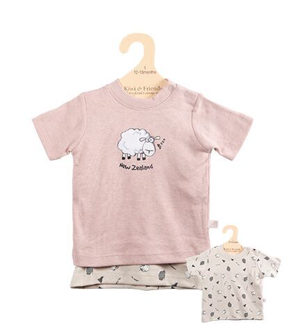 A set of two very cute Baby T-shirts - one featuring a sheep and the other sheep and kiwi.