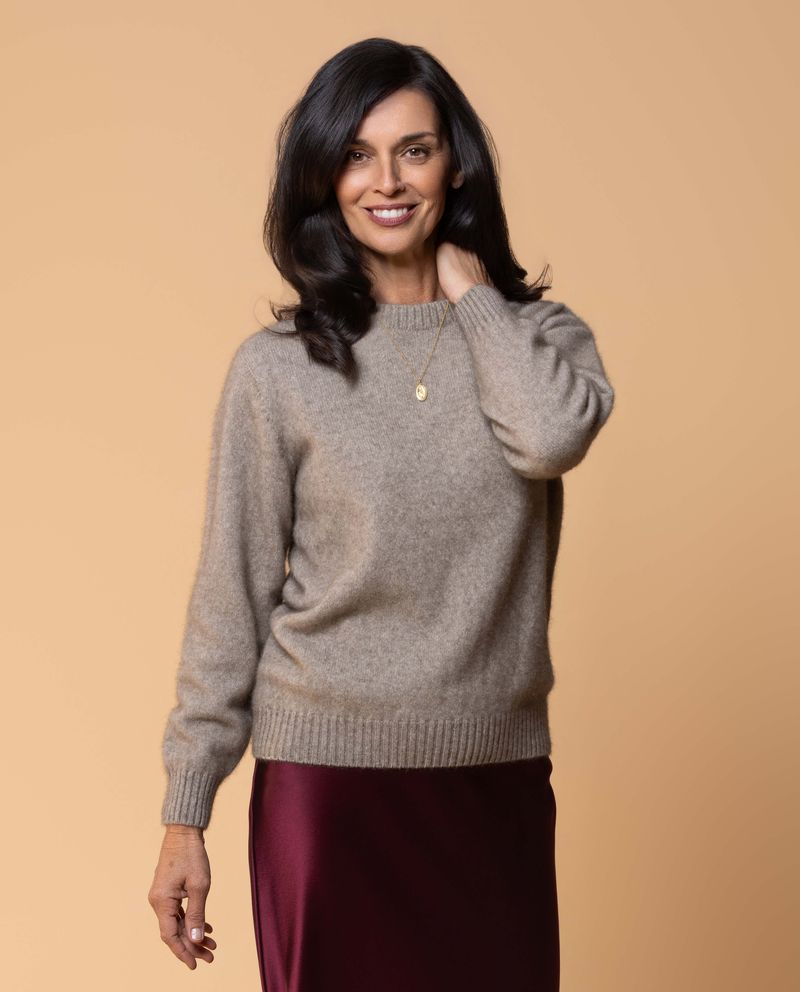 Women's Crew Neck Sweater with ribbed neckline, cuffs and hem.