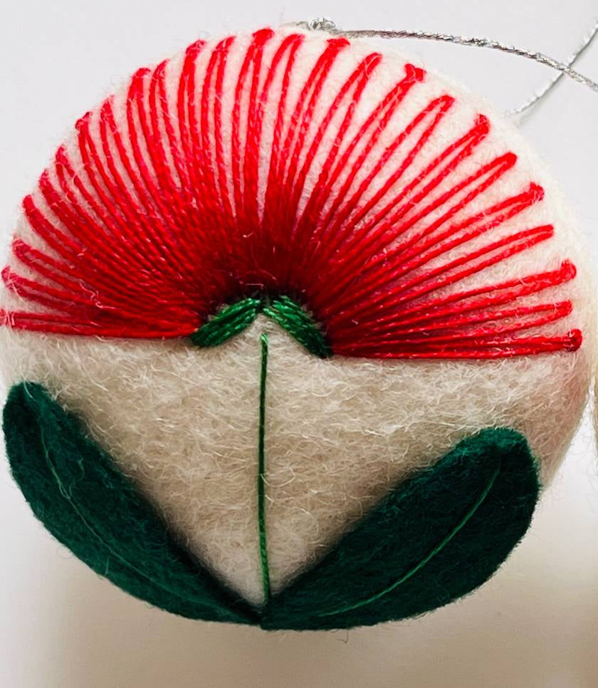 Pohutukawa Felt Bauble Christmas Decoration - Preorder