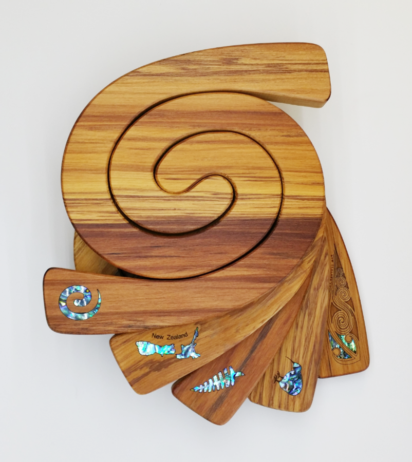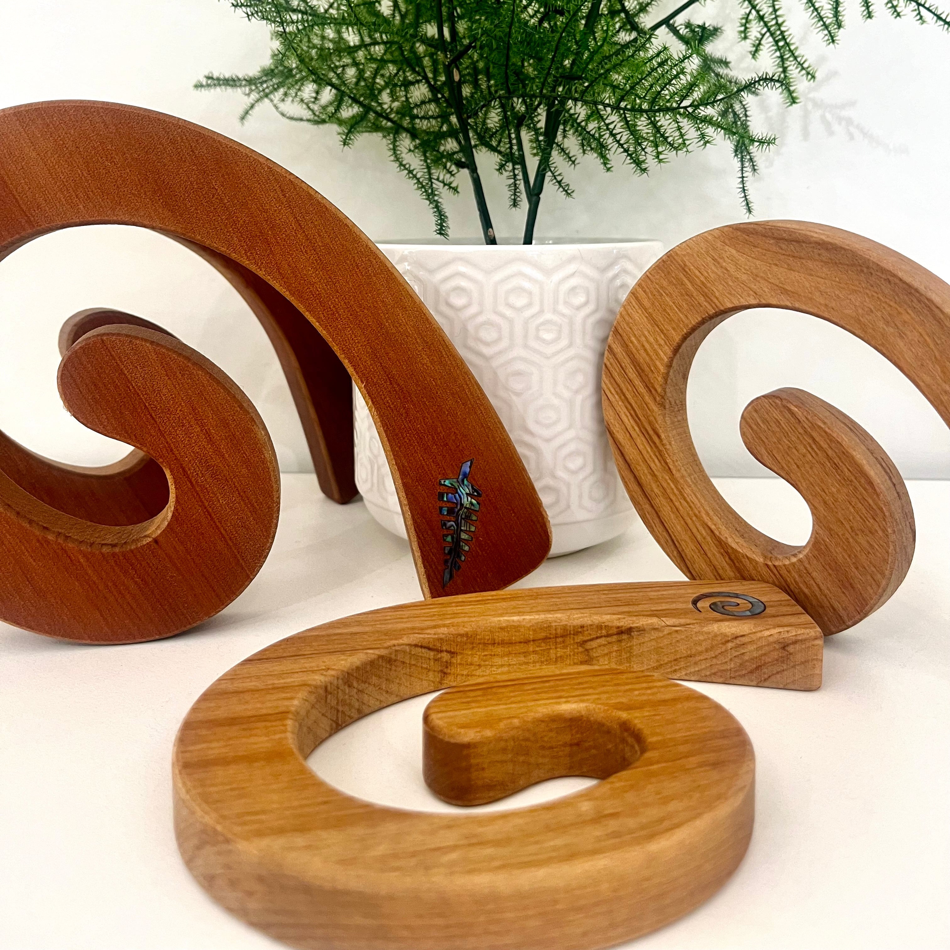This product is handcrafted from Rimu or Kauri which are native New Zealand timbers. They are available in 5 different paua shell inlaid designs.