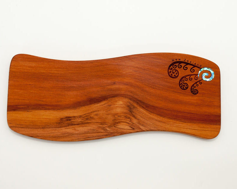Engraved with a swirling spiral Fern pattern and inlaid with a paua koru.